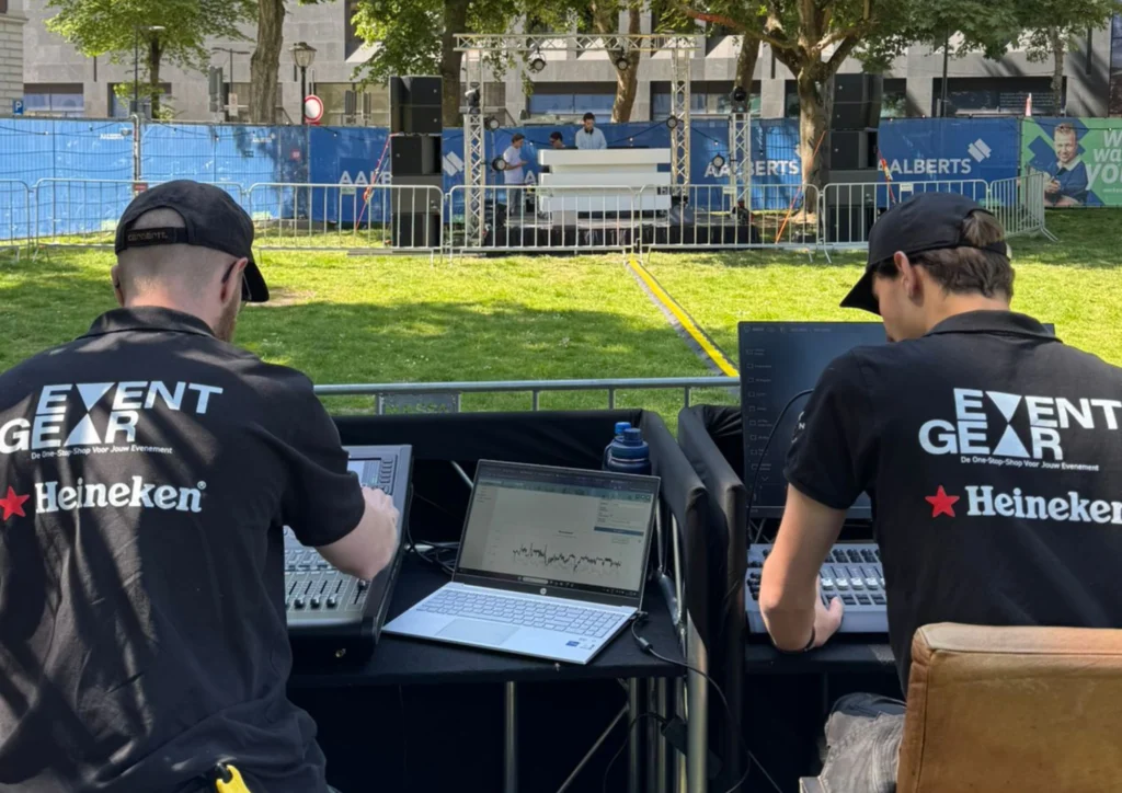 Hard gaan zonder dat het pijn doet. Strak, zuiver en professioneel. Van kleine zalen tot enorme pleinfeesten tot 15.000 bezoekers — wij hebben de juiste sets én de beste engineers.