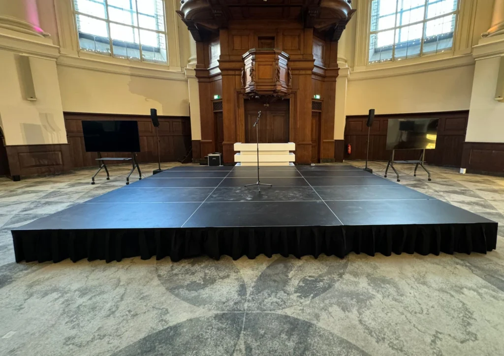 Van een compact kroegpodium tot mega buitenpodium. Wij leveren, bouwen én begeleiden de volledige show.