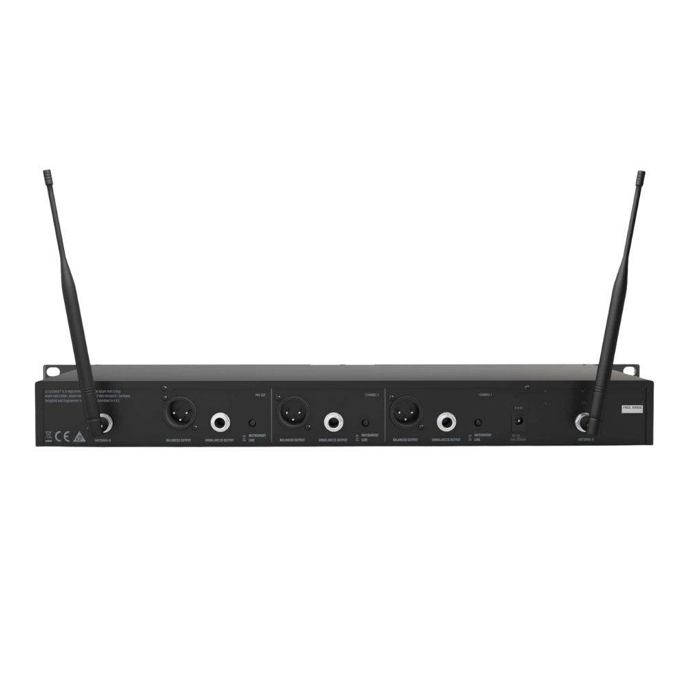 Ontvanger: Dual true diversity, 2× XLR/6,3 mm uitgangen, S/N verhouding > 100 dB, THD < 0,1%